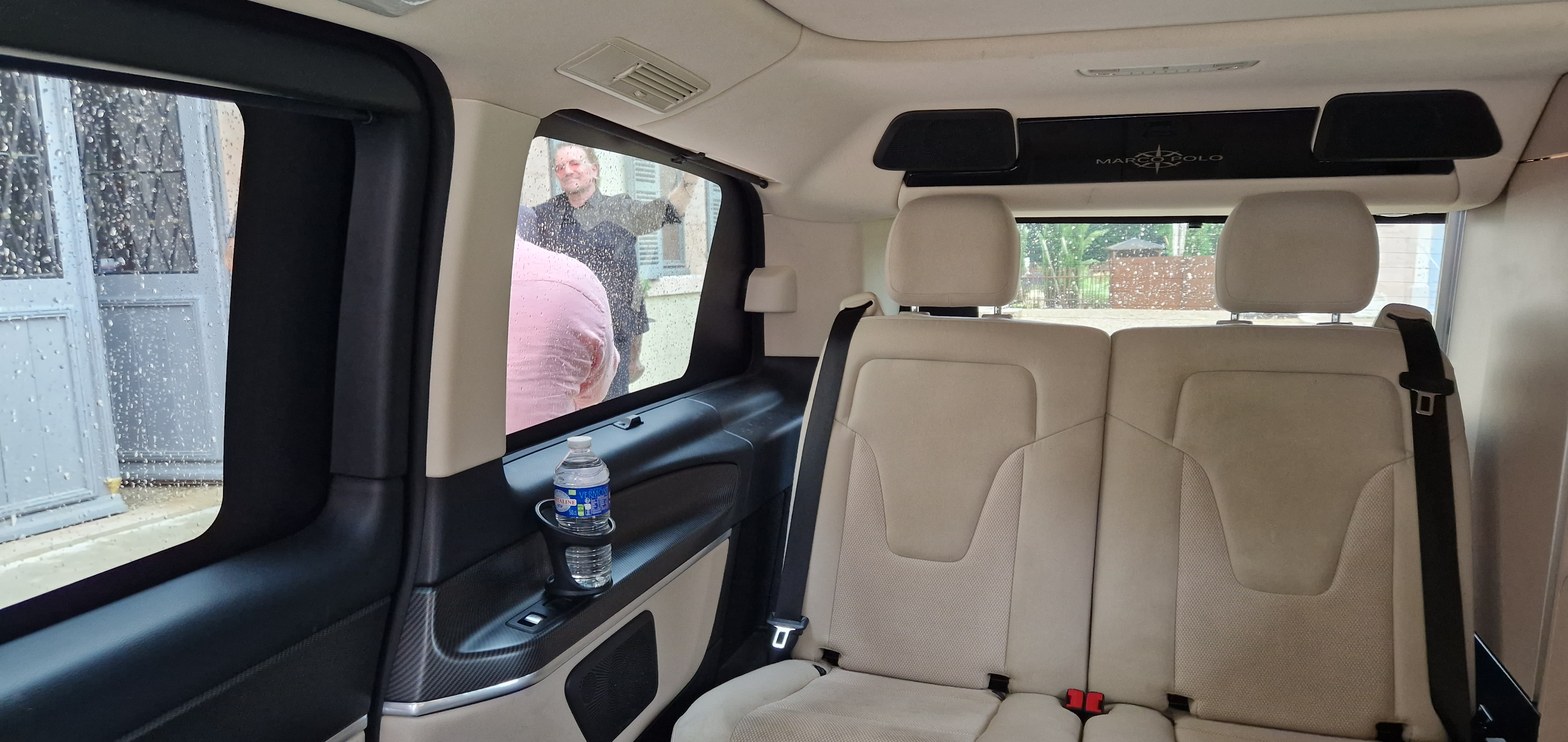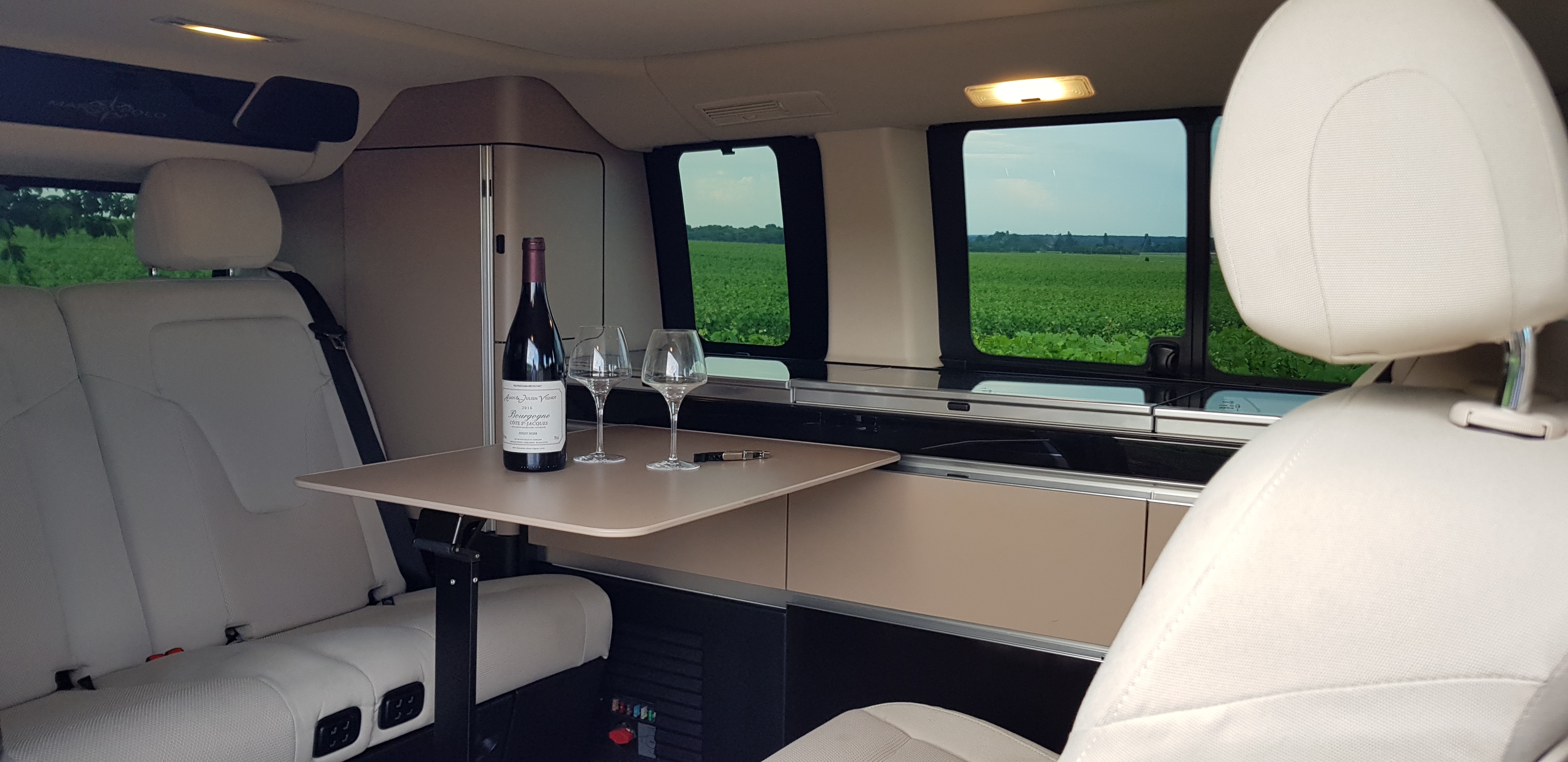 Dégustation à l’intérieur du Mercedes MP, au milieu des vignes