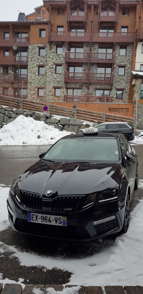Pneus neiges obligatoires pour toute course de taxi en montagne, ici aux Rousses en février 2023