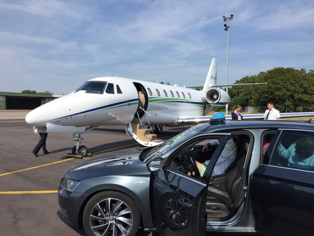 Prise en charge de clients écossais à la sortie de leur jet à l’aéroport de Dijon