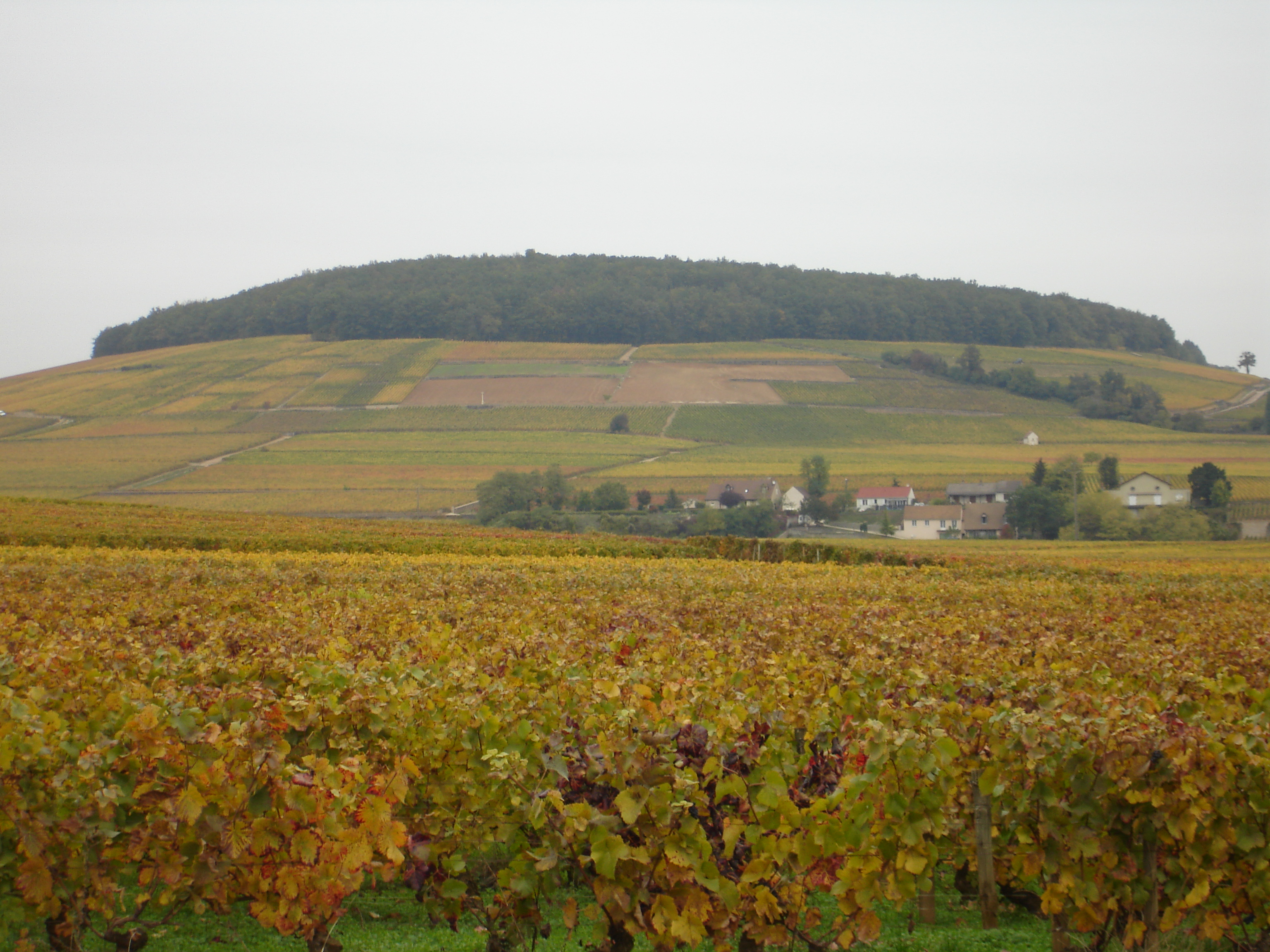 La colline de Corton, recouverte de Grands Crus (Corton Charlemagne, Les Chaumes, Les Perrières, Le Clos Du Roi, Les Bressandes, etc)